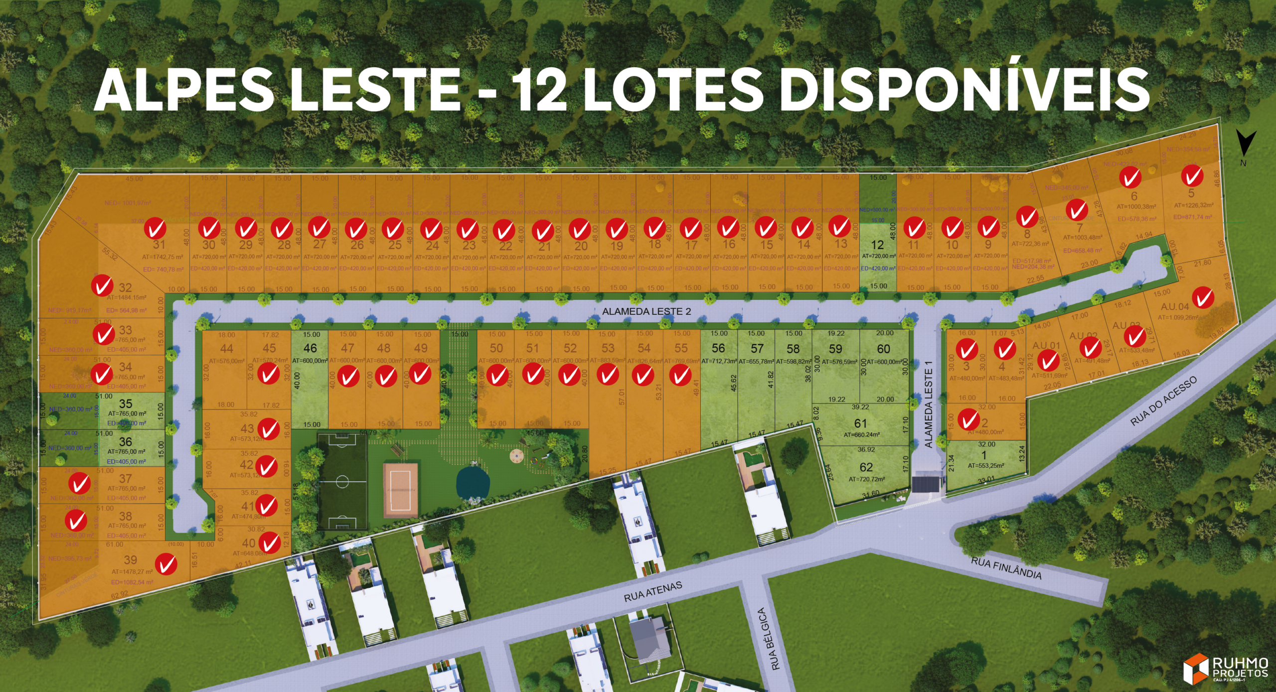 • Terrenos com média  de 720m²
